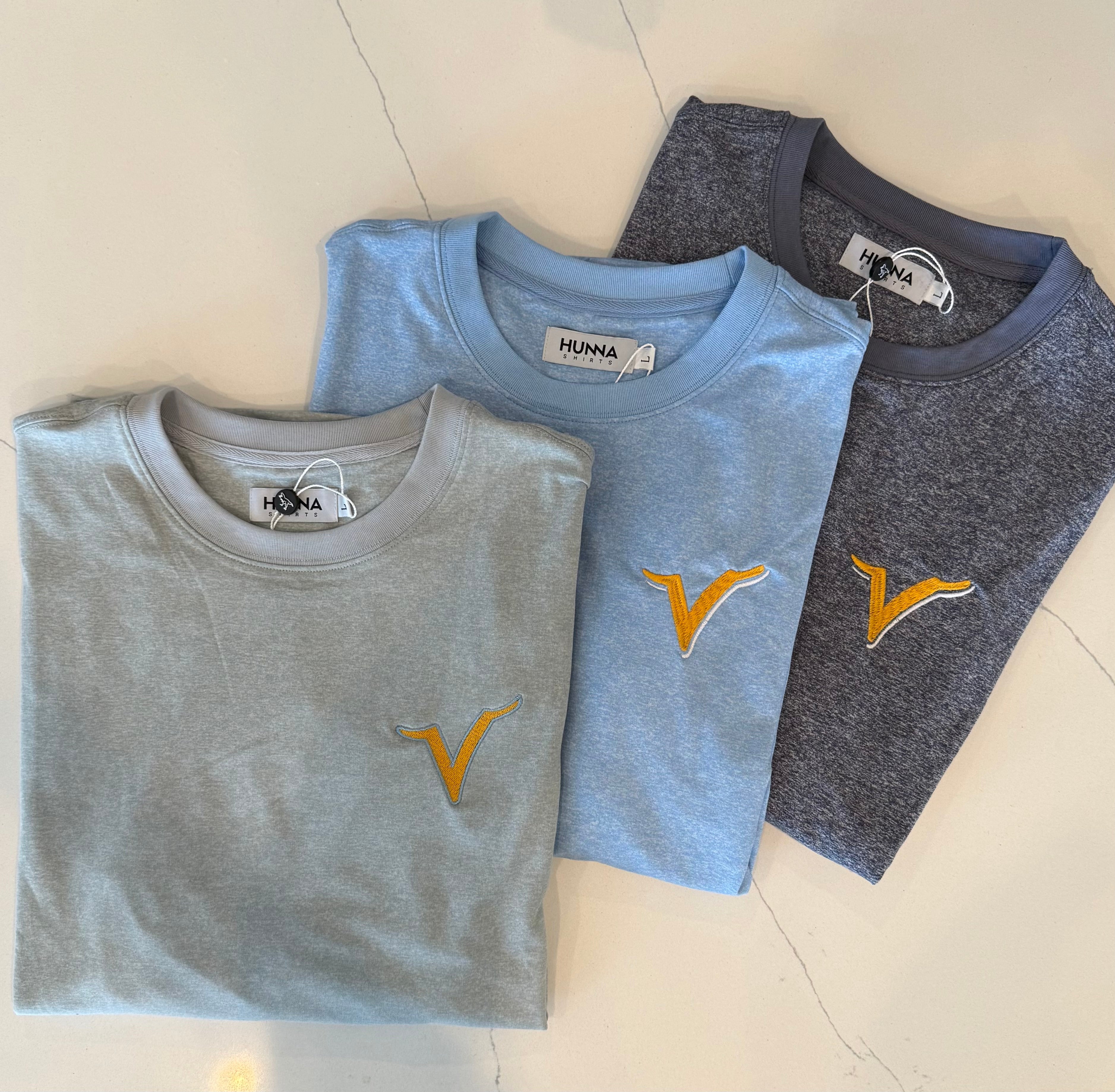 Contact Kevin directly at Kevin@hunnashirts.com with your logo files and he can walk you through the process. It's very easy and there is NO minimum.